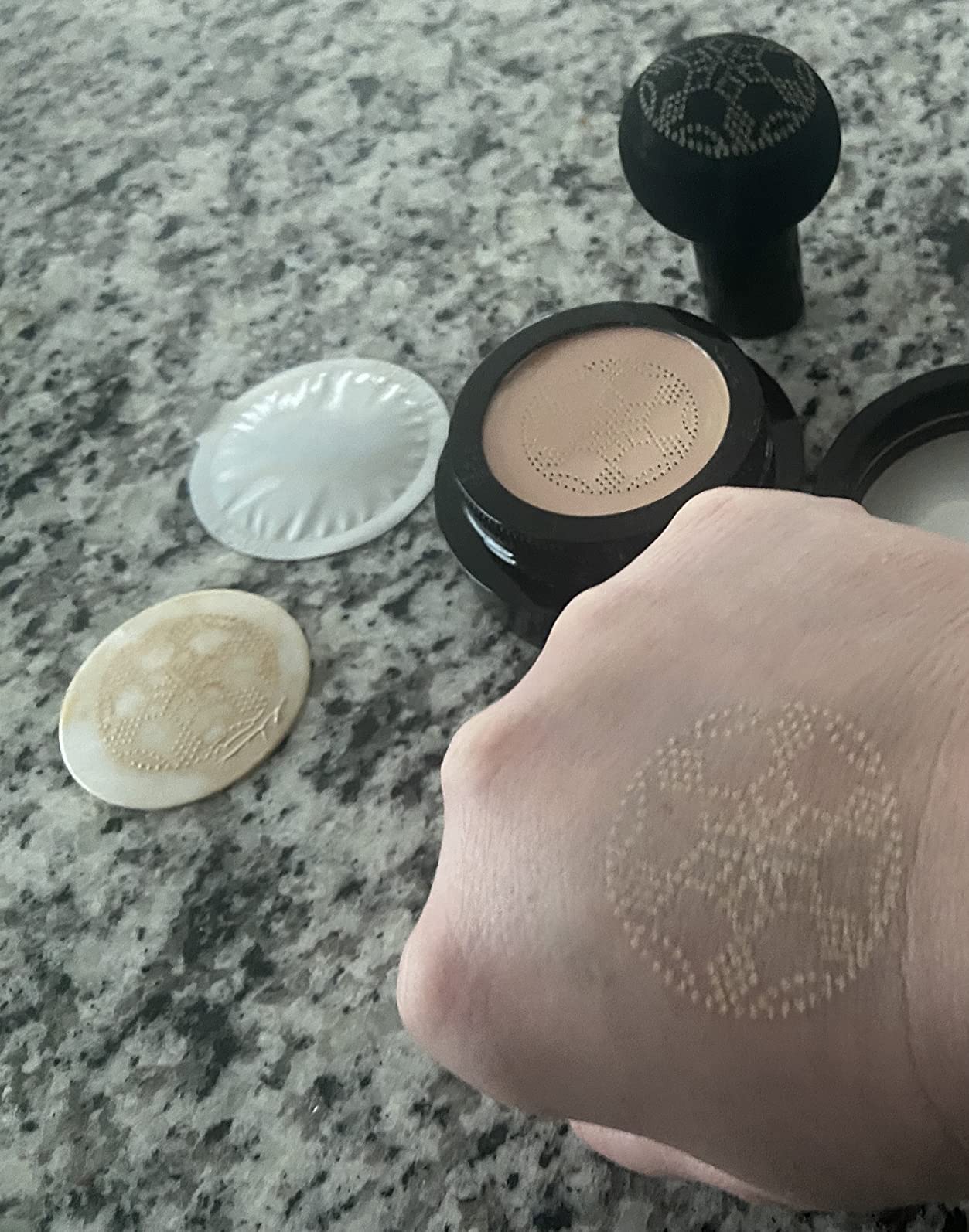 Gire la tapa en el sentido de las agujas del reloj para abrir la película protectora, humedezca la cabeza del hongo con agua pura, luego use el aplicador limpio para tomar una cantidad adecuada de base, una pequeña cantidad de maquillaje uniformemente prensado alcanza para cubrir una gran superficie pero puede aplicar la cantidad que desee si desea una mayor cobertura.